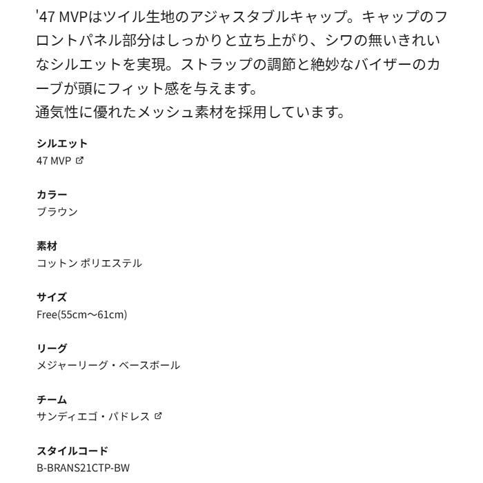 47 キャップ パドレス エムブイピー BRANSON メッシュ ブラウン(14751428) 47 MVP フォーティーセブン 正規品 帽子