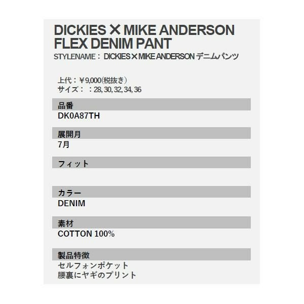 他の画像を見る ディッキーズ x マイクアンダーソン スケートボーディング FLEX DENIM PANT / STONE デニム Dickies SKATEBOARDING x MIKE ANDERSON メーカー希望小売価格 ¥ 9,900 販売価格 ¥ 9,300 税込 カートに入れる お気に入りに登録する
