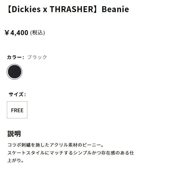 他の画像を見る ディッキーズ × スラッシャー コラボ ビーニー / ブラック Dickies x THRASHER メーカー希望小売価格 ¥ 4,400 販売価格 ¥ 3,680 税込 カートに入れる お気に入りに登録する