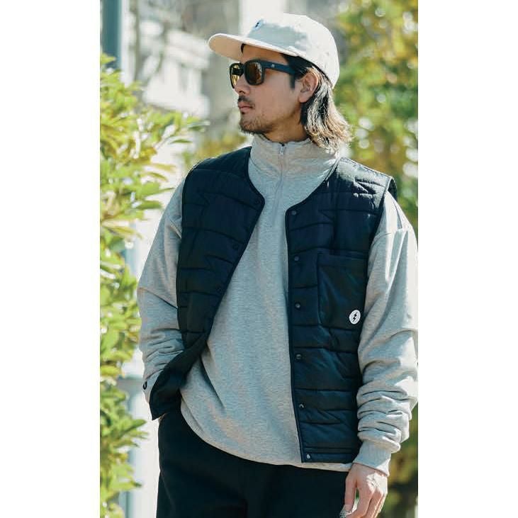 軽量のライトキルティングベスト。薄手のキルトなのでインナーとしても使えます。 腕の動きを邪魔しないので釣りやゴルフにもおすすめです。