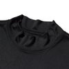 オリジナルグラフィックをバックにレイアウト。やや衿の高いモックネックを採用。