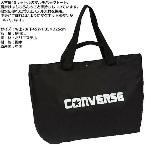 CONVERSEのトートバッグは、シンプルで使いやすいデザインが特徴です。丈夫なキャンバス素材を使用し、日常使いに最適。大容量でありながら軽量で、持ち運びやすさも抜群です。内側にはポケットがあり、小物の整理も簡単です。