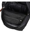 メインポケットへのエントリーは開口部の広いジッパー。メインポケット内にタブレットポケット。フロントサブのジッパーポケット。両サイドにボトルポケット。チェストストラップ。