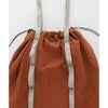 特性が異なる2種類の糸を用いて織機し、染色からくる縮率の差によって生地表面に独特の凹凸がある、シアサッカー調のユニークな素材による、約30Lの容量をもつトートバッグ。独特のハリ感があり、軽撥水性も持ち合わせています。