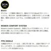 脱ぎ履きラクラクのダイヤル式、BOAシステム搭載のブーツ。少ない力で確実に締め上げできるので女性には特におすすめのシステムです。
