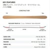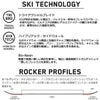 ノーズのロッカーがどんなコンディションでもオールマイティーな滑りを約束し、テールの低く短いロッカーが様々な雪質でコントロール性能を発揮する。ツイン・チップ・スキーのあらゆるコンディションで、汎用性とコントロール性を高めるために、ティップとテールに緩やかで伸びのある立ち上がりを持たせています。
