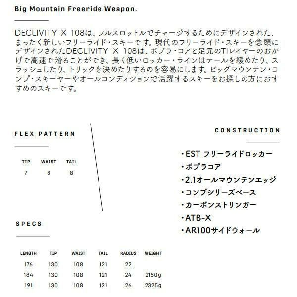 他の画像を見る アルマダ スキー板 ディクリビティ X 108 ARMADA DECLIVITY X 108 + 25 サロモン STRIVE 12 GW 115mmブレーキ (24-25 2025)日本正規品【L2】【代引不可】 メーカー希望小売価格 ¥ 154,000 販売価格 ¥ 107,800 税込 在庫切れ カートに入れる お気に入りに登録する