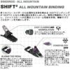 SHIFT第二世代のフリーライド性能を備えたフリーライド・ツアーリングビンディング。ピン(ローテック)ビンディングのツーリング効率性とアルペンフリーライドビンディングのパフォーマンス性を融合したモデルです。SHIFTは、さらなる高みを目指すスキーヤーのための究極のビンディングです。第一世代からのバージョンアップは、耐久性を向上させるためより大きく、より頑丈なウイングで耐衝撃性が向上。より重厚なトウレバーを採用。アルミニウム製マイクロアジャスタブルAFDパワーブロックが優れたパワー伝達。最適化された高さと構造で第一世代より4mm高いクライミングエイドを実現。より頑丈で信頼性の高いブレーキレバーにより、ハイクアップ時のブレークのロッキング性と外れを向上。