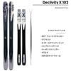 ディクリビティ X 102は実績のあるシェイプに完全な新構造を採用し、様々なコンディションで優れた性能を発揮するナローなシャーシにビッグマウンテンに必要なエッセンスを加えたスキーです。ポプラコアは反発と安定性を加え、再設計されたATBXチタナルレイヤーはビビリと振動をカットし、テールは深い雪でも簡単にポップとスラッシュを可能にします。デクリビティX 102は、オンピステでのカービング性能と、オフピステでのフリーライドを完璧にこなします。