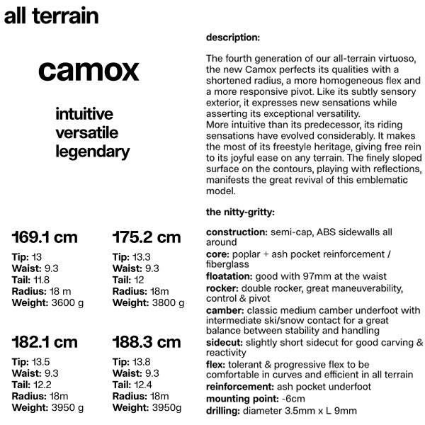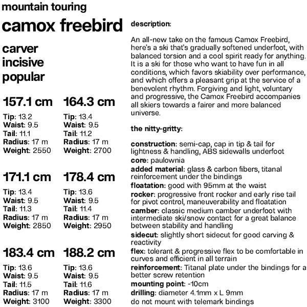 camox freebirdは、柔軟性と軽量性が特徴のオールラウンドスキーです。バックカントリーでの操作性に優れ、あらゆる地形で滑りを楽しめます。冒険心あふれるスキーヤーに最適な選択肢です。