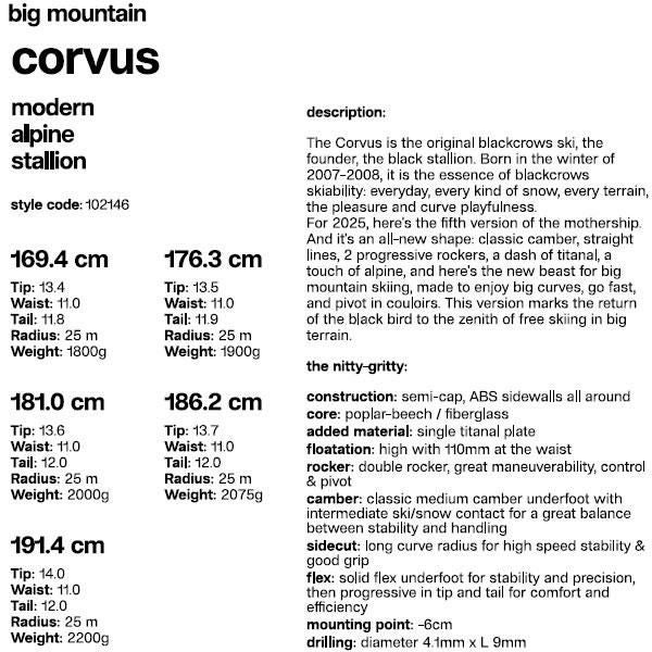 blackcrows スキー板 2025 Corvus スキー板 単品 (板のみ) コーバス コルバス 24-25 ブラッククロウズ 日本正規品 【L2】