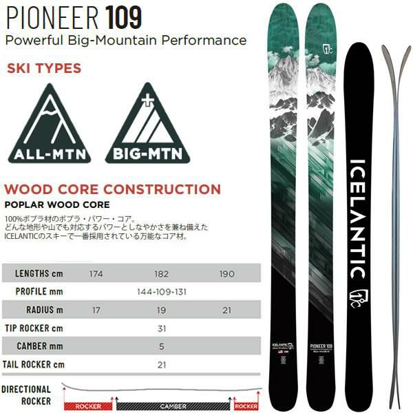 ICELANTIC アイスランティック スキー 2024 PIONEER 109 スキー板 単品 (板のみ)23-24 パイオニア 109 フリーライドスキー【L2】【代引不可】