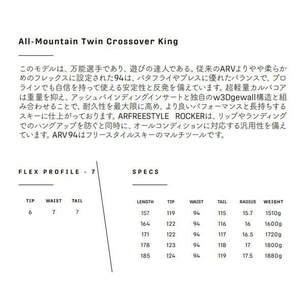 フリースタイルスキーのパイオニア。革新的なデザインと高性能で、パークやパウダーでの滑走に最適。