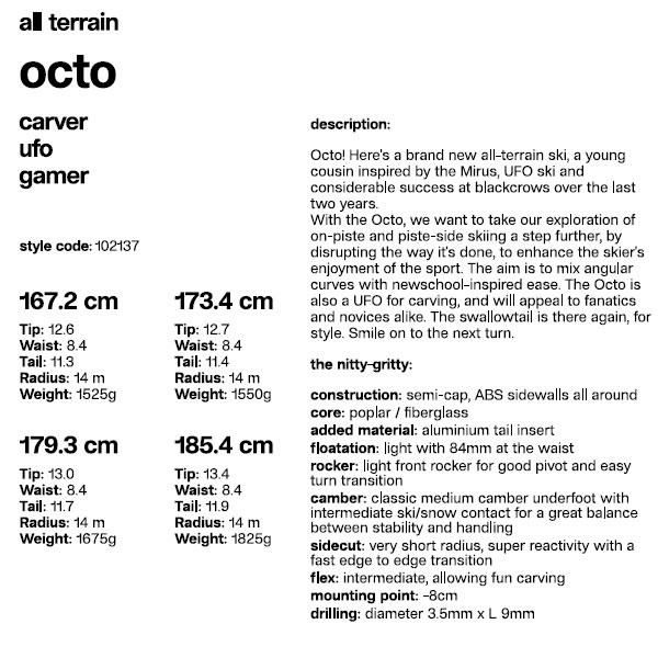 パークやキッカー、トリックを滑る為のフリースタイルスキー、ゲレンデ内外の未圧雪エリアを滑るパウダースキー、いわゆる山全体を滑るフリーライドスキー、オールマウンテンスキー、コブ斜面を滑る為のモーグルスキー等、幅広いジャンルのスキーをラインナップ。