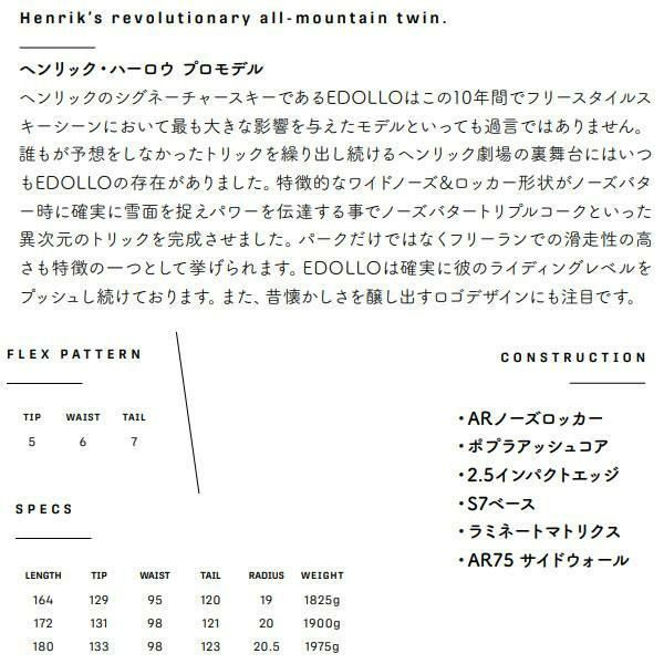 フリースタイルスキーのパイオニア。革新的なデザインと高性能で、パークやパウダーでの滑走に最適。