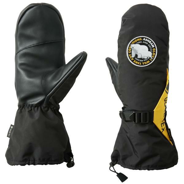 Ashramがデザインするベーシックモデル「SPACING LOGO MITT」。シンプルでどんなウェアにもマッチするアーシーなカラーリングに、かわいいポーラーベアーのワッペンがポイント。サイドのトライアングルガードがフィッティングの調整にも機能します。もちろん、防水フィルムにはGORE-TEXを使用しているので、最高品質の防水性・透湿性は保証済み。S/M、L/XLの2サイズ展開、日本製生地を使用するロングカフタイプのベーシックなミトングローブ。