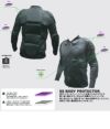 背中・肩・ひじ・腹部に衝撃吸収・分散・圧縮反発する素材PF-01と3D-AIRMESHを搭載。通気性をプロテクションを実現。