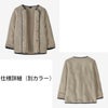 襟ぐり、前立て、袖口、ポケット、裾にタフタの縁取り付き