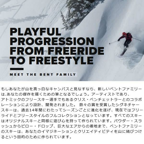 ATOMIC(アトミック)は、1955年にオーストリアで創業されたスキー用品ブランドで、ファットスキーにおいて特に高い評価を得ています。深雪やパウダーでの滑走を楽しむために開発された「Bent」シリーズと「Backland」シリーズは、それぞれ異なる特性でスキーヤーを魅了します。「Bent」シリーズは、広いウエスト幅と「HRZN Tech」技術を特徴とし、抜群の浮力と安定性を提供します。特に「Bent Chetler」は、パウダーでの圧倒的な操作性と楽しさを追求したモデルで、スキーを自由に楽しみたいライダーに最適です。