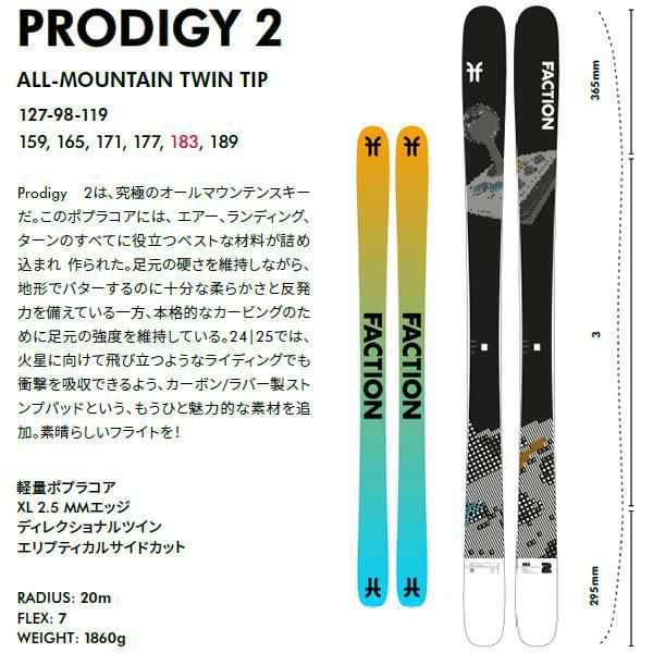 FACTION スキー板 PRODIGY 2 プロディジー2 (24-25 2025) + 25 マーカー SQUIRE 10 100mmブレーキ 日本正規品【L2】【代引不可】