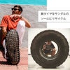 ナチュラルなジュート(麻)素材に加工し貼り付けてあるのは、焼却処理や廃棄されるはずだったタイヤ。
