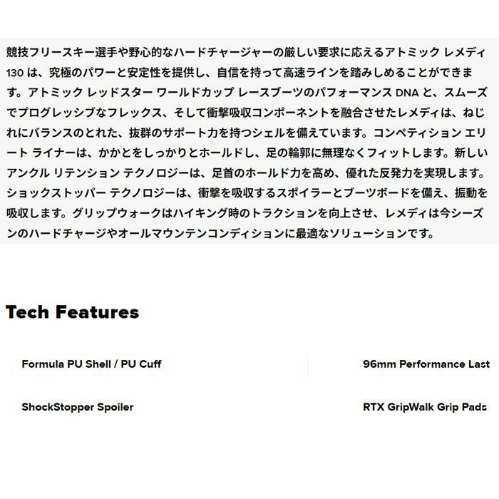 他の画像を見る アトミック スキーブーツ ATOMIC REMEDY 130 レメディ 130 (25-26 2026) (AE5031940) メーカー希望小売価格 ¥ 129,910 販売価格 ¥ 110,400 税込 カートに入れる お気に入りに登録する