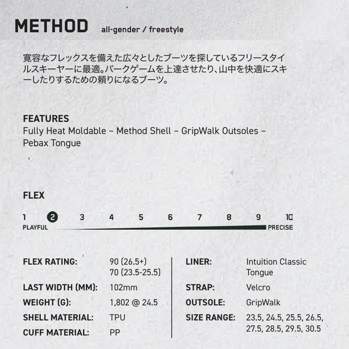 他の画像を見る K2 スキーブーツ METHOD メソッド K2 FLEX (25-26 2026) フリースタイルスキー ブーツ ケーツー 日本正規品 メーカー希望小売価格 ¥ 71,500 販売価格 ¥ 57,000 税込 カートに入れる お気に入りに登録する