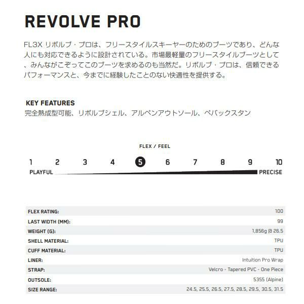 他の画像を見る 【予約商品】 K2 スキーブーツ K2 FLEX REVOLVE PRO(24-25 2025) ケーツー フリースタイルスキー ブーツ 日本正規品 メーカー希望小売価格 ¥ 93,500 販売価格 ¥ 65,400 税込 カートに入れる お気に入りに登録する