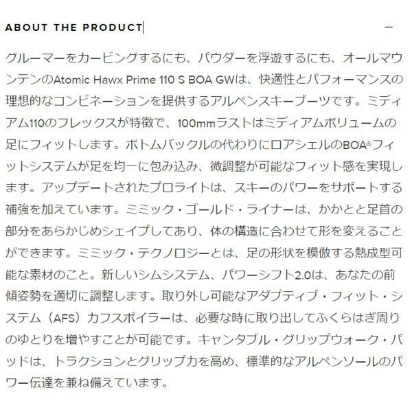 他の画像を見る アトミック スキーブーツ BOA ATOMIC HAWX PRIME 110 S BOA GW / Black / Red (24-25 2025)AE5029980 メーカー希望小売価格 ¥ 99,990 販売価格 ¥ 69,900 税込 カートに入れる お気に入りに登録する