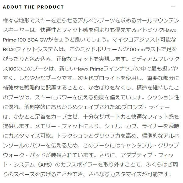 他の画像を見る アトミック スキーブーツ ATOMIC HAWX PRIME 100 GW / Black / Red (24-25 2025) メーカー希望小売価格 ¥ 79,970 販売価格 ¥ 55,900 税込 カートに入れる お気に入りに登録する