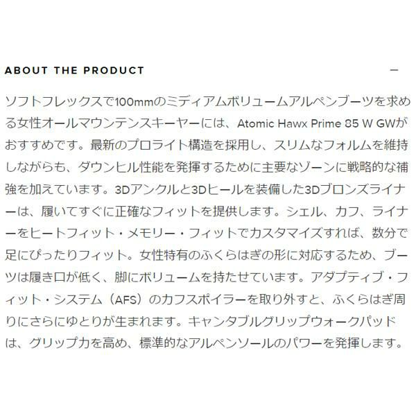他の画像を見る アトミック スキーブーツ レディース ATOMIC HAWX PRIME 85 W GW / Black / Stone (24-25 2025)AE5030200 メーカー希望小売価格 ¥ 73,920 販売価格 ¥ 51,700 税込 カートに入れる お気に入りに登録する