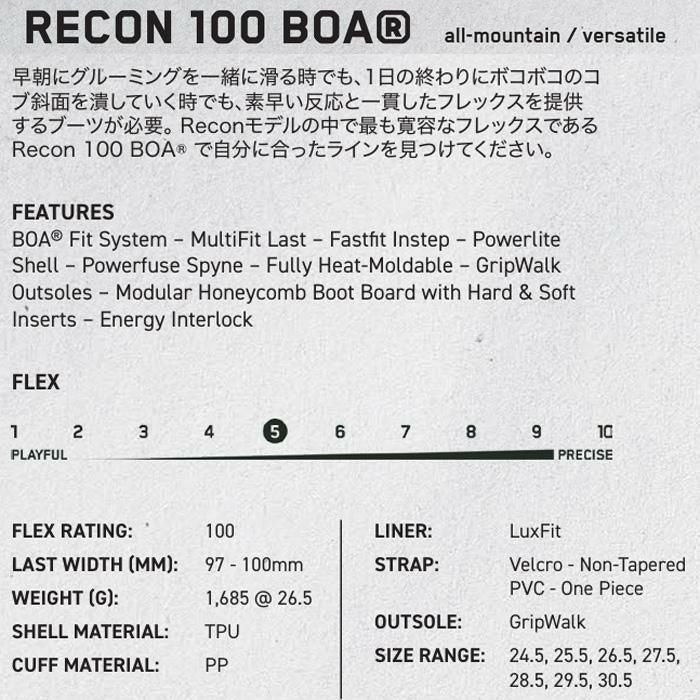 K2 スキーブーツ RECON 100 BOA リーコン 100 BOA (25-26 2026) ケーツー 日本正規品