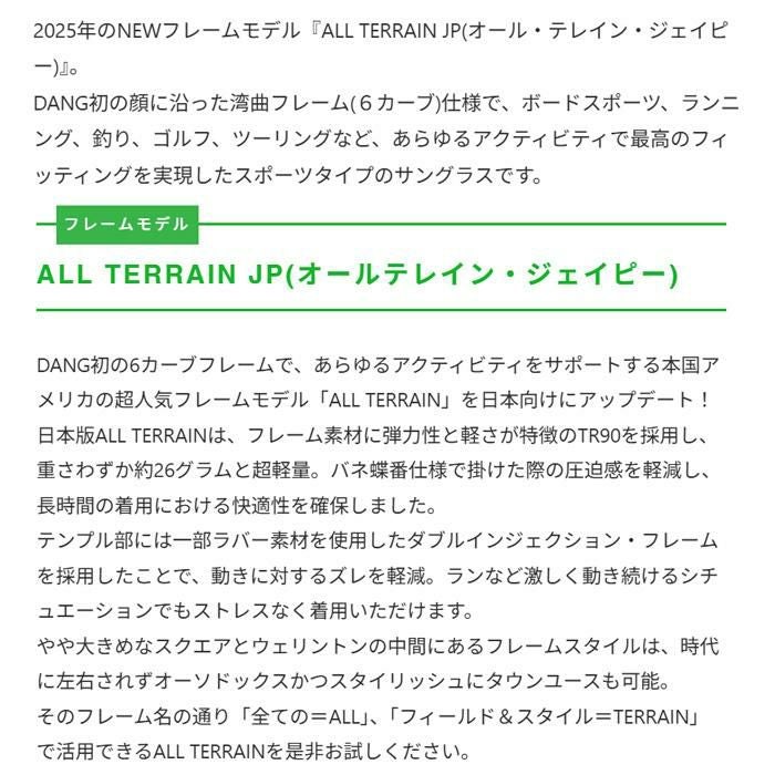 DANG SHADES(ダンシェイディーズ)DANG SHADESは、アメリカ発のサングラスブランドで、プロスノーボーダーのクリス・ベレスフォードによって設立されました。おしゃれで手頃な価格のサングラスを提供し、多くのアスリートやアウトドア愛好者に支持されています。デザインはシンプルながらも多彩で、機能性とファッション性を兼ね備えています。サングラスの快適さとスタイルを求める人々に、個性を表現できるアクセサリーを提案します。