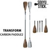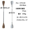 カーボンシャフトで軽量。ブレードはナイロンでコストを抑えますがウッドプリントで雰囲気アップ。分割すると最長でも77cmとコンパクトなので置き場所や持ち運びも困りません。さらにシャフトを1本少なくして使えば子供や女性にも使いやすいサイズにできます。今お使いのパドルの買い替えや、スペアとしていかがでしょう。