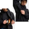 全ての縫い目にシームテープ加工。YKK耐水マットジップ。微調整可能なフードシンチ。動作性を高める立体裁断。パウダーゲート、パンツとつなぐためのスナップ。シェルにタフタとクローズドセルメッシュのライナー。わき下ベンチレーション。袖のパスポケット、内ポケット。ウェストゲーター。