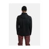 保温性を高めるフリース素材の裏地、バックネックの強化ストレッチテープ、2ウェイジップのフロント、風の侵入を防ぐ内側のストームフラップ、