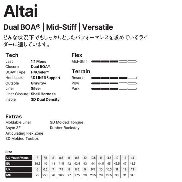 他の画像を見る ナイデッカー スノーボードブーツ NIDECKER ALTAI アルタイ BLACK ダブルボア(24-25 2025)スノーボード ブーツ SNOWBOARD BOOTS【C1】 メーカー希望小売価格 ¥ 52,800 販売価格 ¥ 42,000 税込 カートに入れる お気に入りに登録する