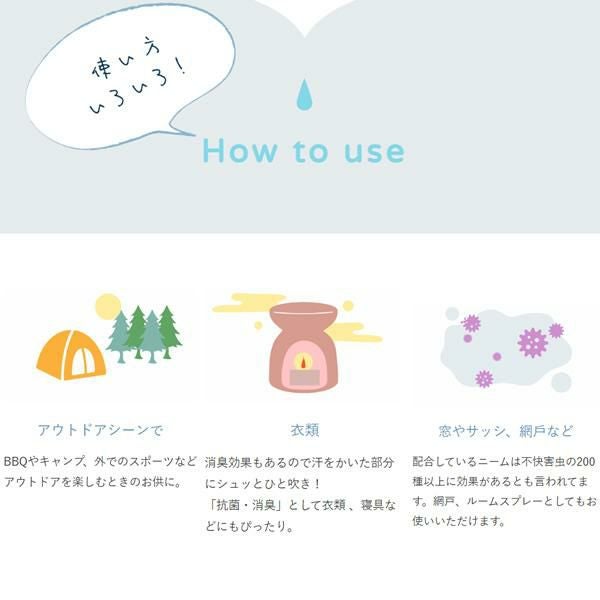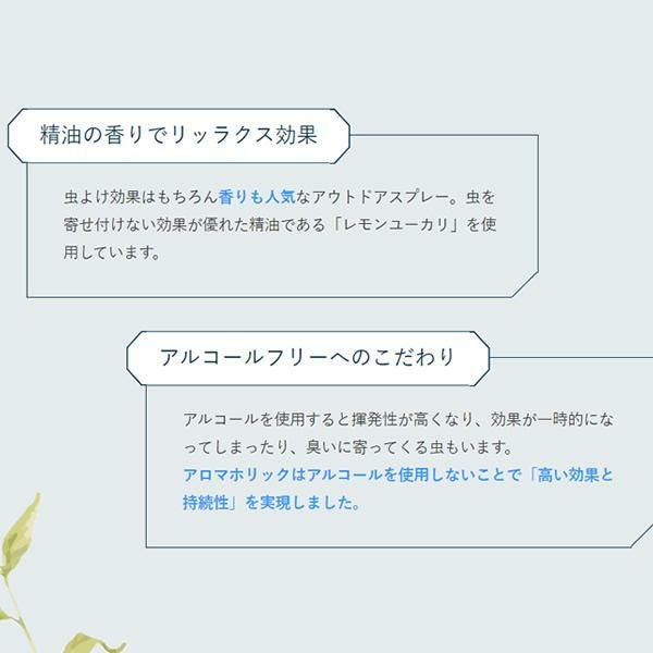 他の画像を見る アロマホリック アウトドアスプレー (植物オイルと水だけの虫よけ)250ml + 50ml (2本セット)抗菌・消臭付き AROMA HOLIC メーカー希望小売価格 ¥ 3,135 販売価格 ¥ 3,100 税込 カートに入れる お気に入りに登録する