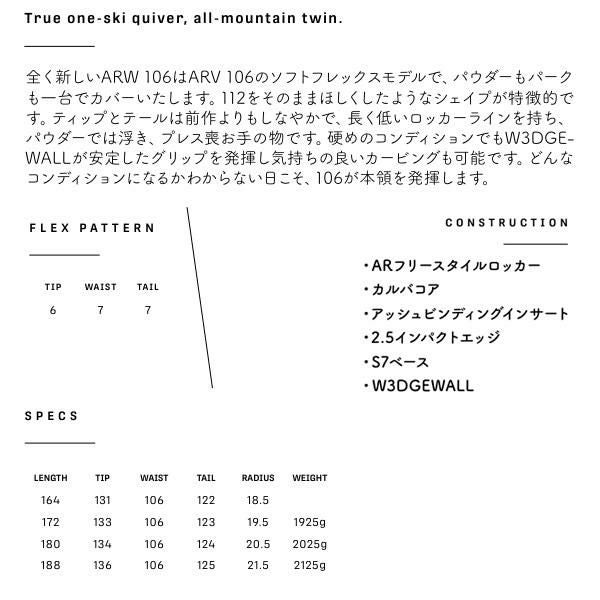 他の画像を見る アルマダ スキー板 エーアールダブル 106 ARMADA ARW 106 単品 (板のみ) RA0000626 (24-25 2025)日本正規品【L2】【代引不可】 メーカー希望小売価格 ¥ 126,500 販売価格 ¥ 88,500 税込 カートに入れる お気に入りに登録する