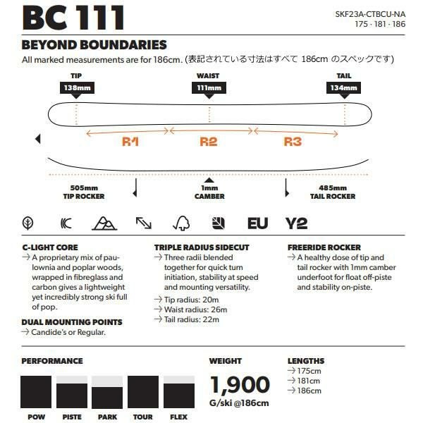 他の画像を見る CANDIDE SKIS キャンディッド スキー 2026 BC 111 ビーシー111 スキー板 単品 (板のみ) 25-26 日本正規品 【L2】【代引不可】 メーカー希望小売価格 ¥ 126,500 販売価格 ¥ 113,000 税込 カートに入れる お気に入りに登録する